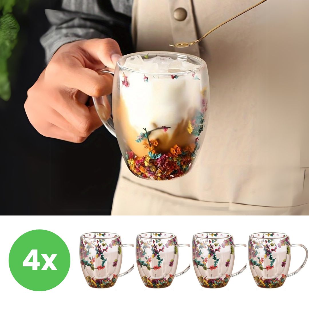 Cană de sticlă cu flori FLORA