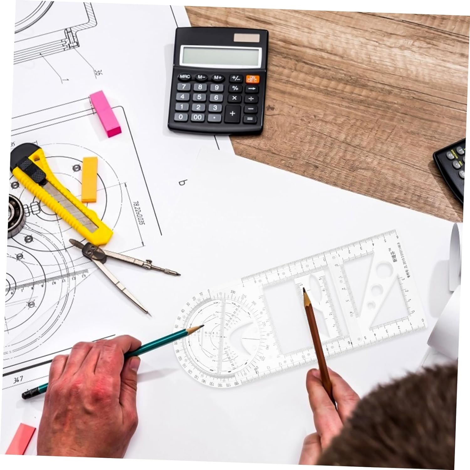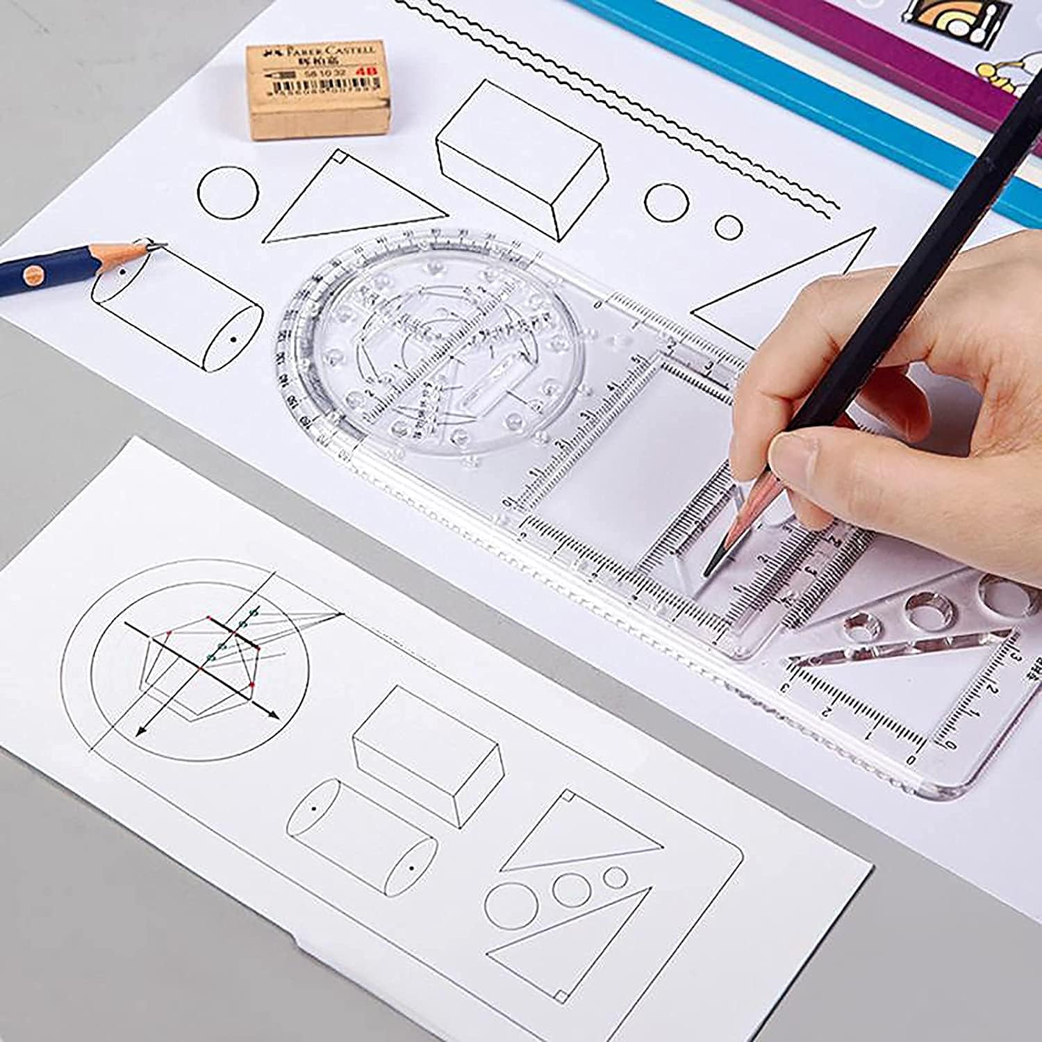 O riglă de măsurare versatilă cu raportor pentru a desena figura dorită, poate de asemenea să deseneze o curbă de arc, o linie paralelă orizontală și o linie paralelă verticală. 📏