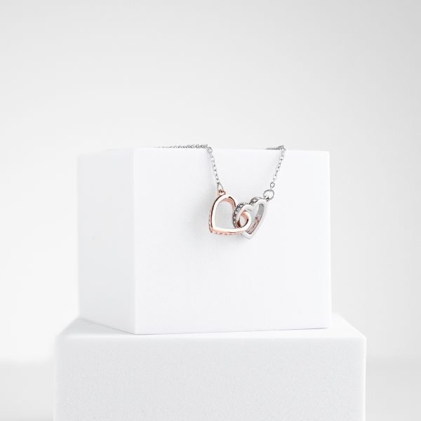 Colierul are un pandantiv delicat în formă de inimă împletită, decorat cu cristale sclipitoare de zirconiu cubic, simbolizând iubirea, conexiunea și devotamentul. Lungimea reglabilă îl face confortabil pentru purtare zilnică, menținând în același timp un aspect rafinat și elegant ✨