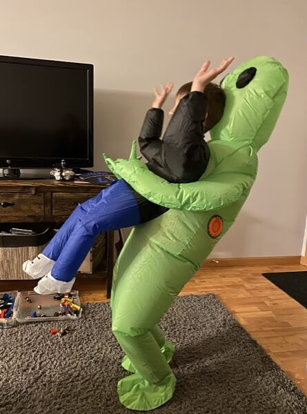 Când răpirea de către extratereștri devine amuzantă!Cu acest costum gonflabil ALIEN extrem de amuzant vei deveni imediat vedeta oricărei petreceri. Creează o iluzie optică realistă și în același timp haioasă, ca și cum ai fi fost răpit de extratereștri – râsetele sunt garantate! 😂Bateriile nu sunt incluse.