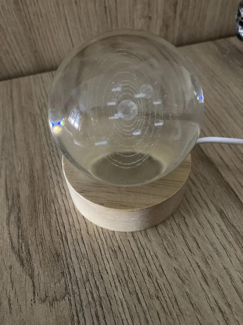 Bucură-te de armonia luminii calde și a materialelor naturale. Cu suport din lemn masiv și sferă de cristal de înaltă calitate, această lampă îmbină minimalismul cu rafinamentul. Strălucirea blândă de 3000K creează o ambianță calmă și confortabilă care te ajută să te relaxezi după o zi lungă.
