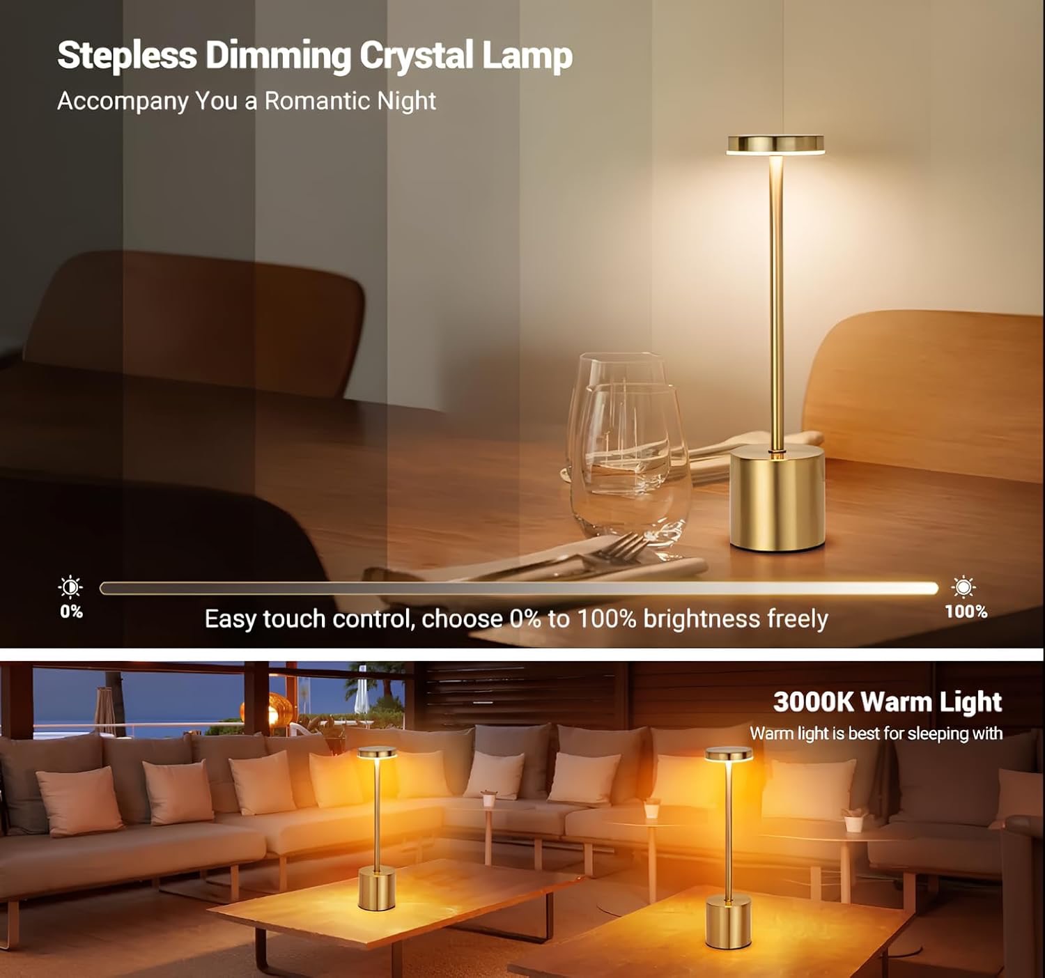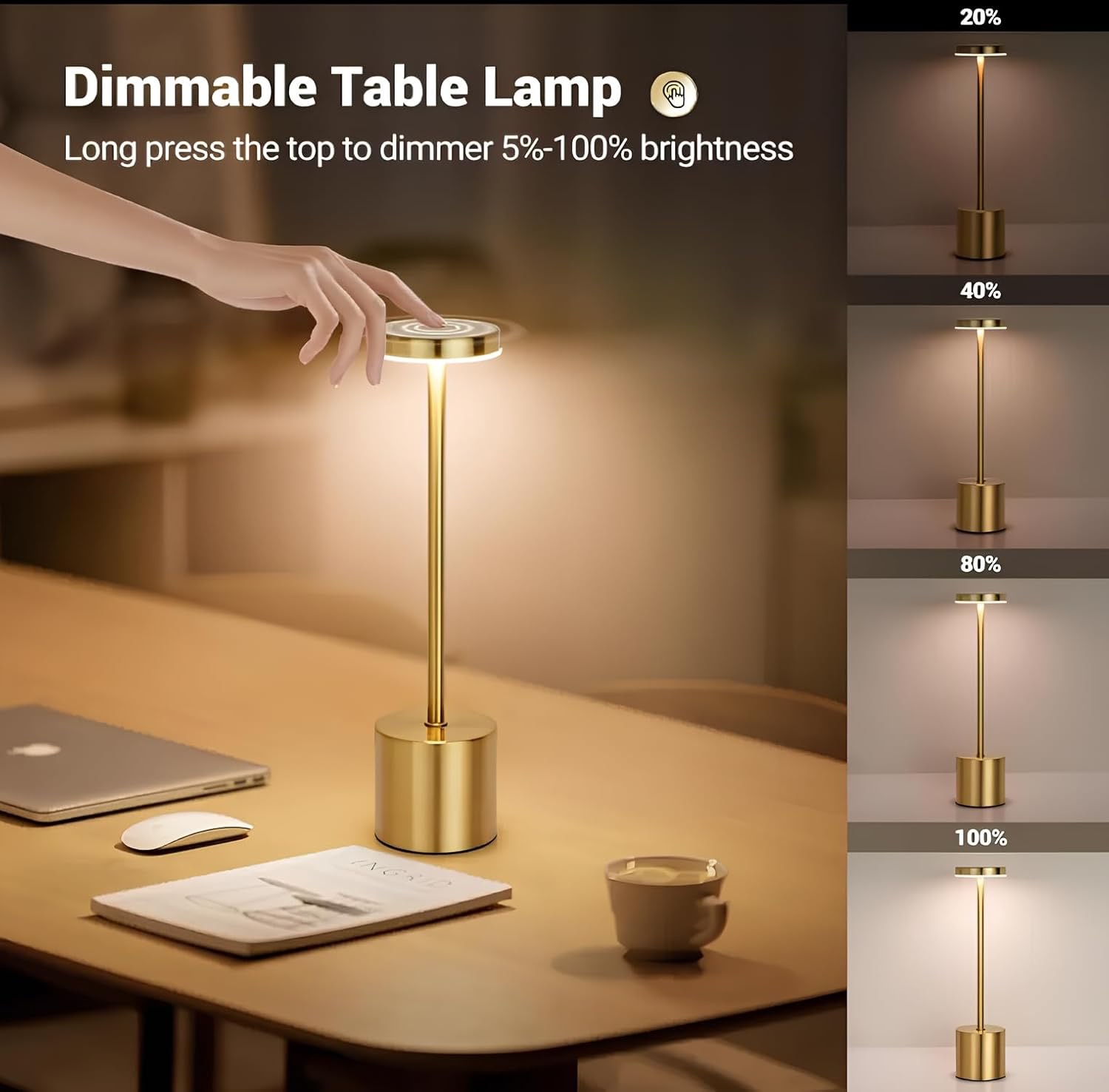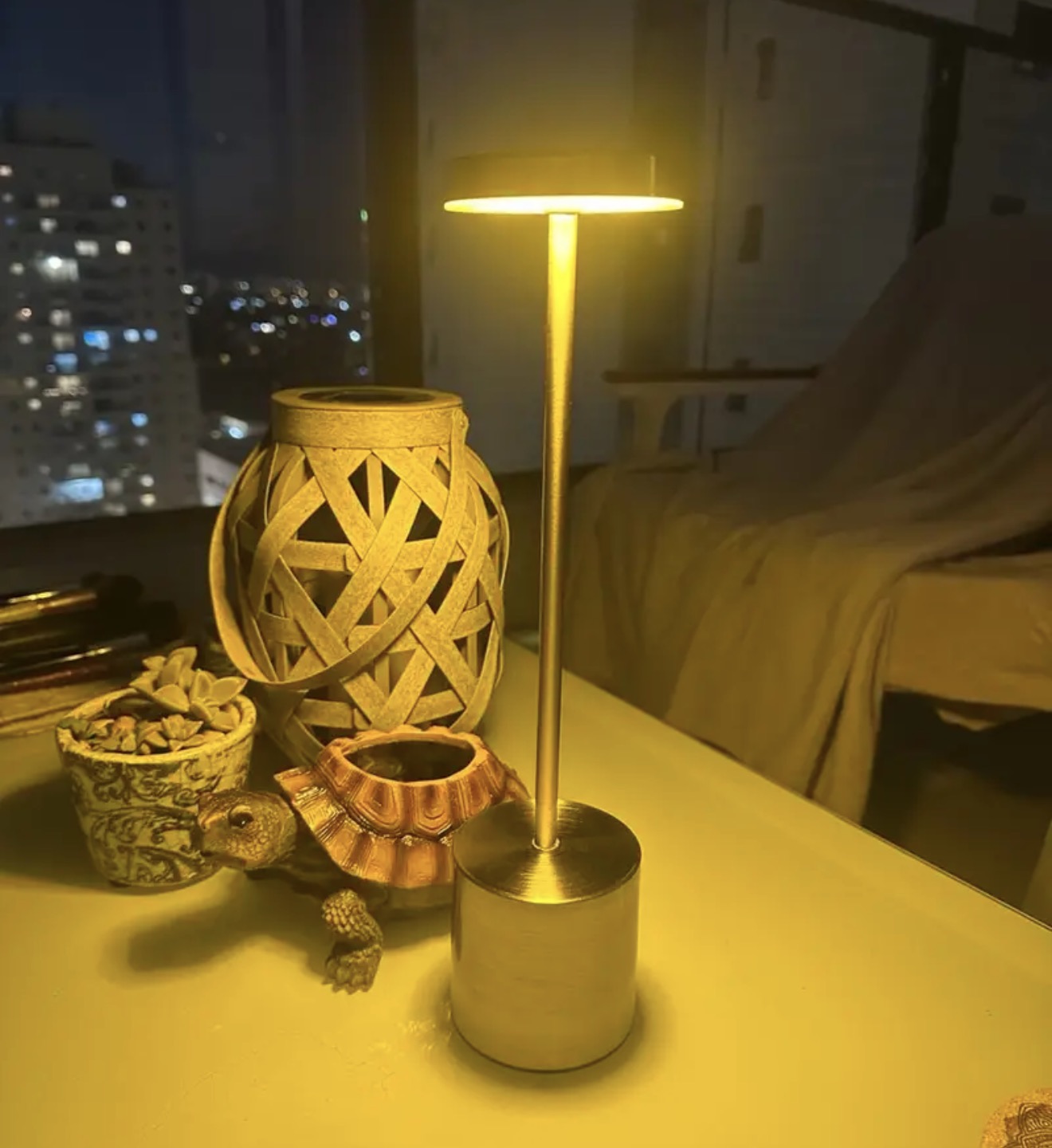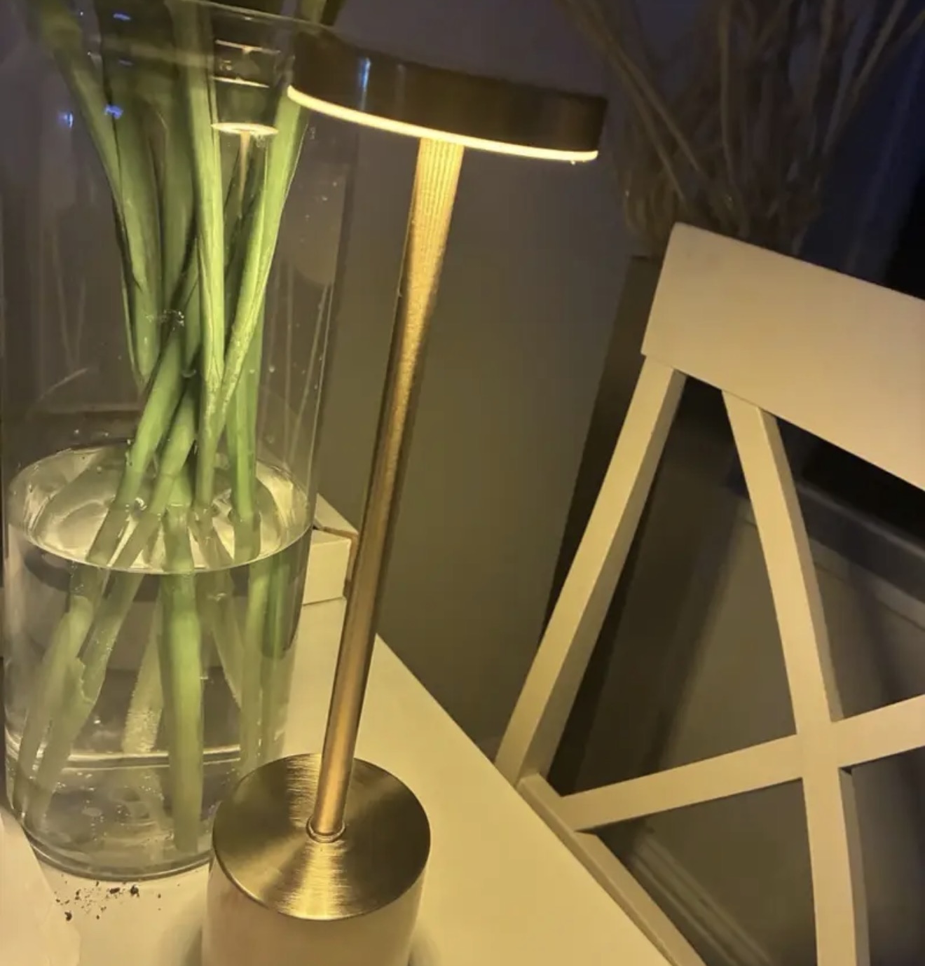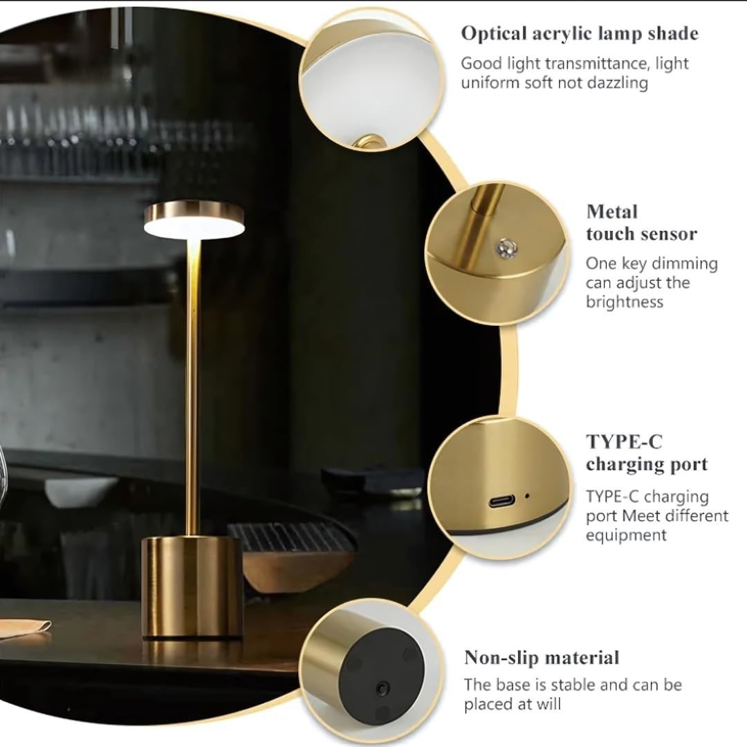 Realizată din oțel inoxidabil cu un abajur rotund elegant, această lampă minimalistă îmbină eleganța cu funcționalitatea. Designul compact și ușor permite mutarea facilă, iar bateria reîncărcabilă asigură o utilizare flexibilă, fără fir, oriunde ai nevoie de lumină suplimentară.