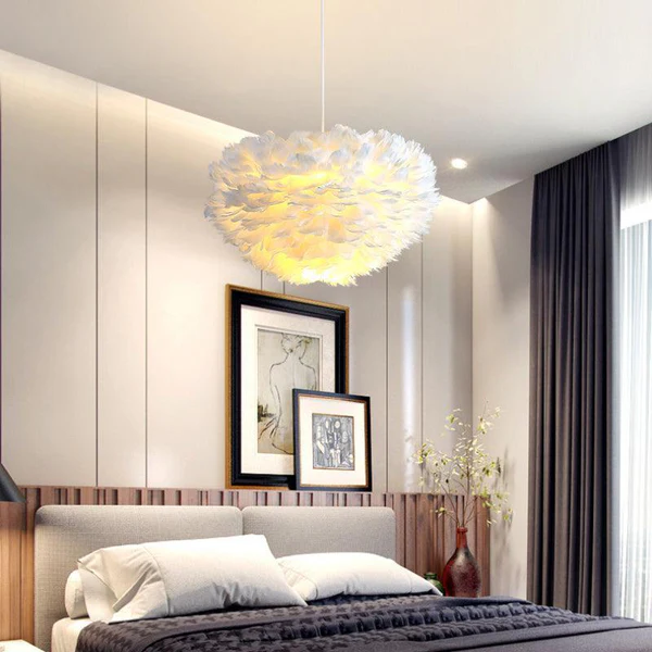 Pene de înaltă calitate și bază metalică ce îmbină frumusețea naturală cu minimalismul contemporan. Designul unic transformă această lampă într-un accent decorativ pentru orice locuință.