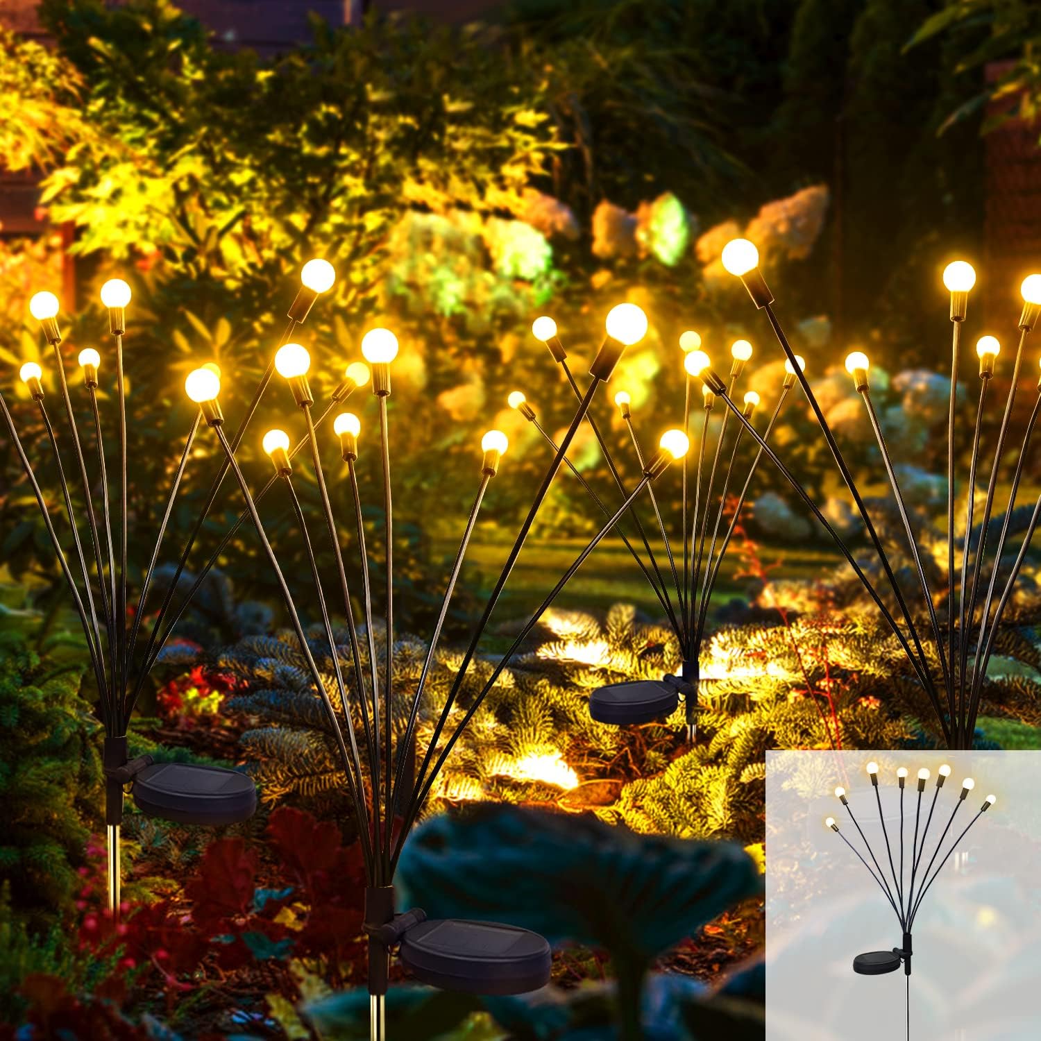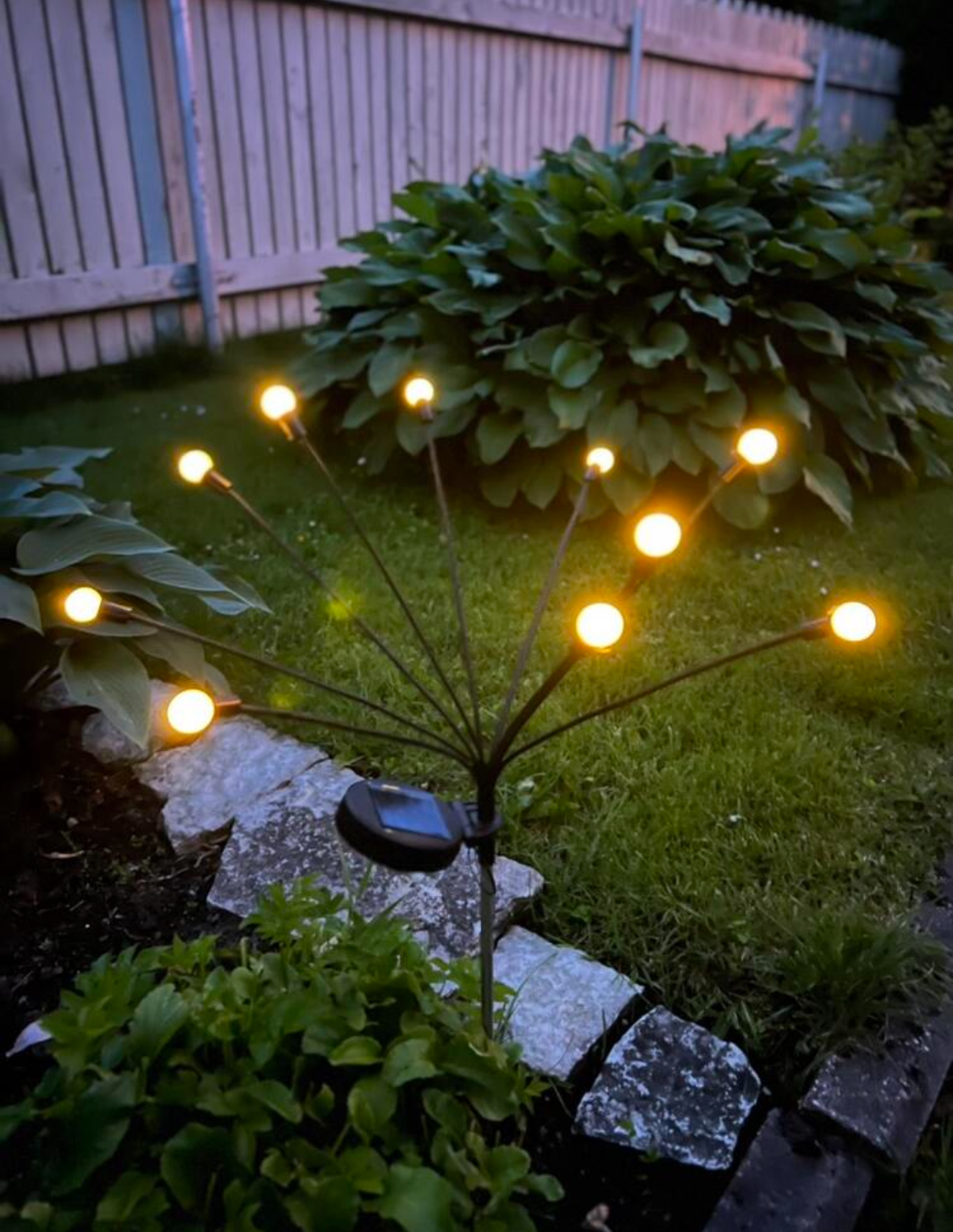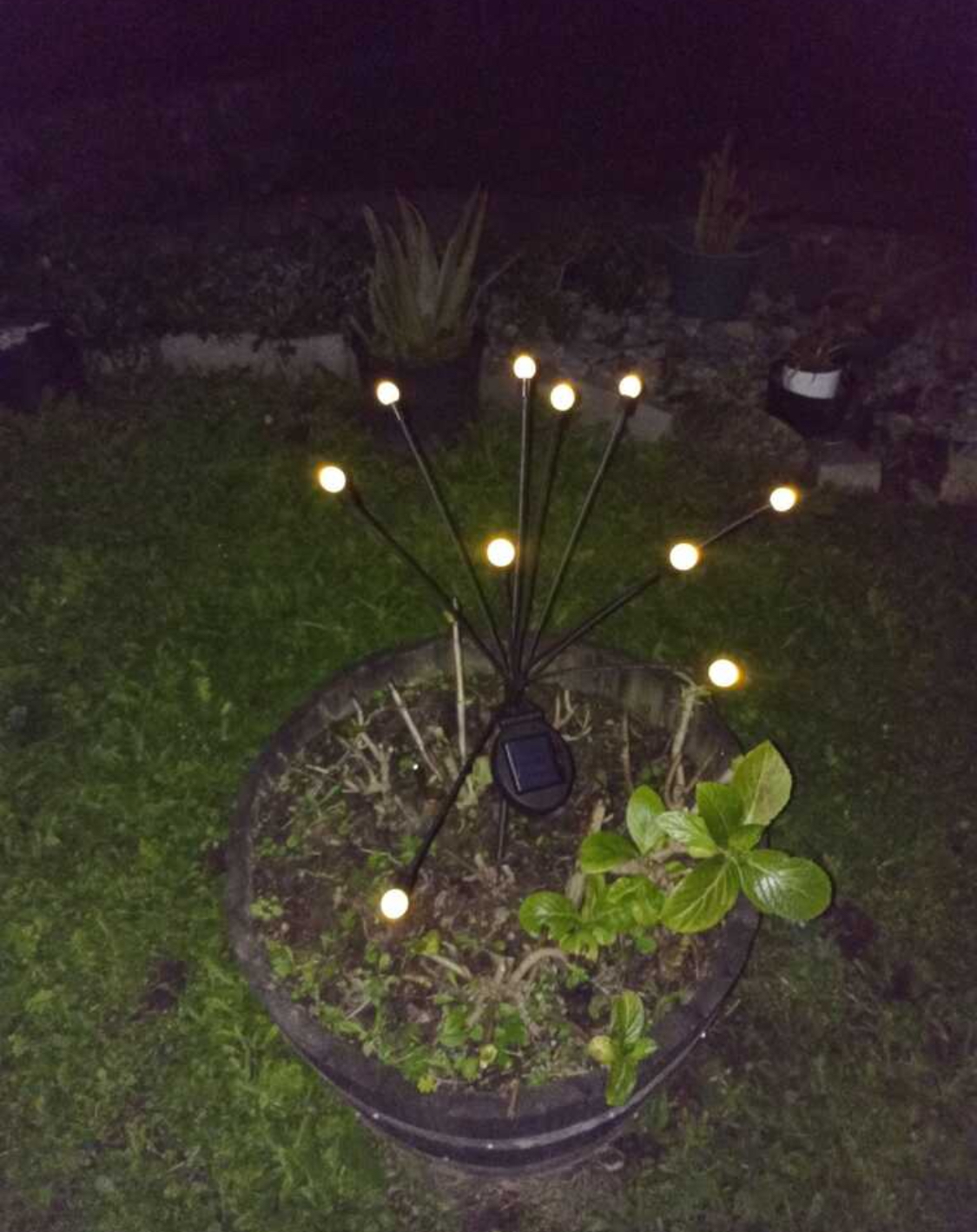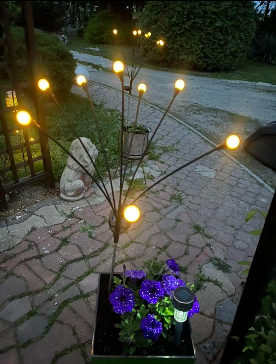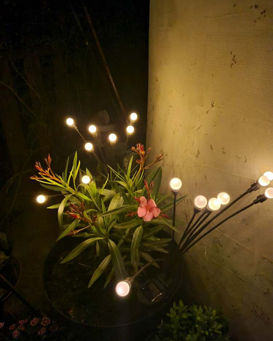 Pe această lampă solară sunt 6 lumini care creează un efect minunat atunci când bate vântul. Sunt susținute de fire foarte flexibile care permit mișcarea luminilor atunci când bate vântul. 🔝