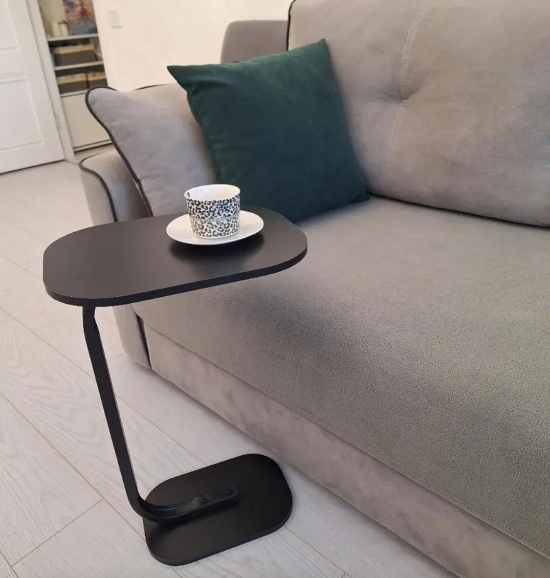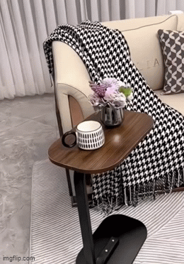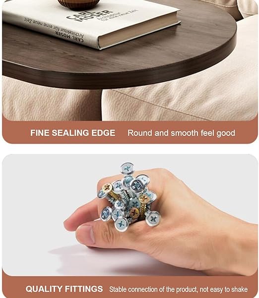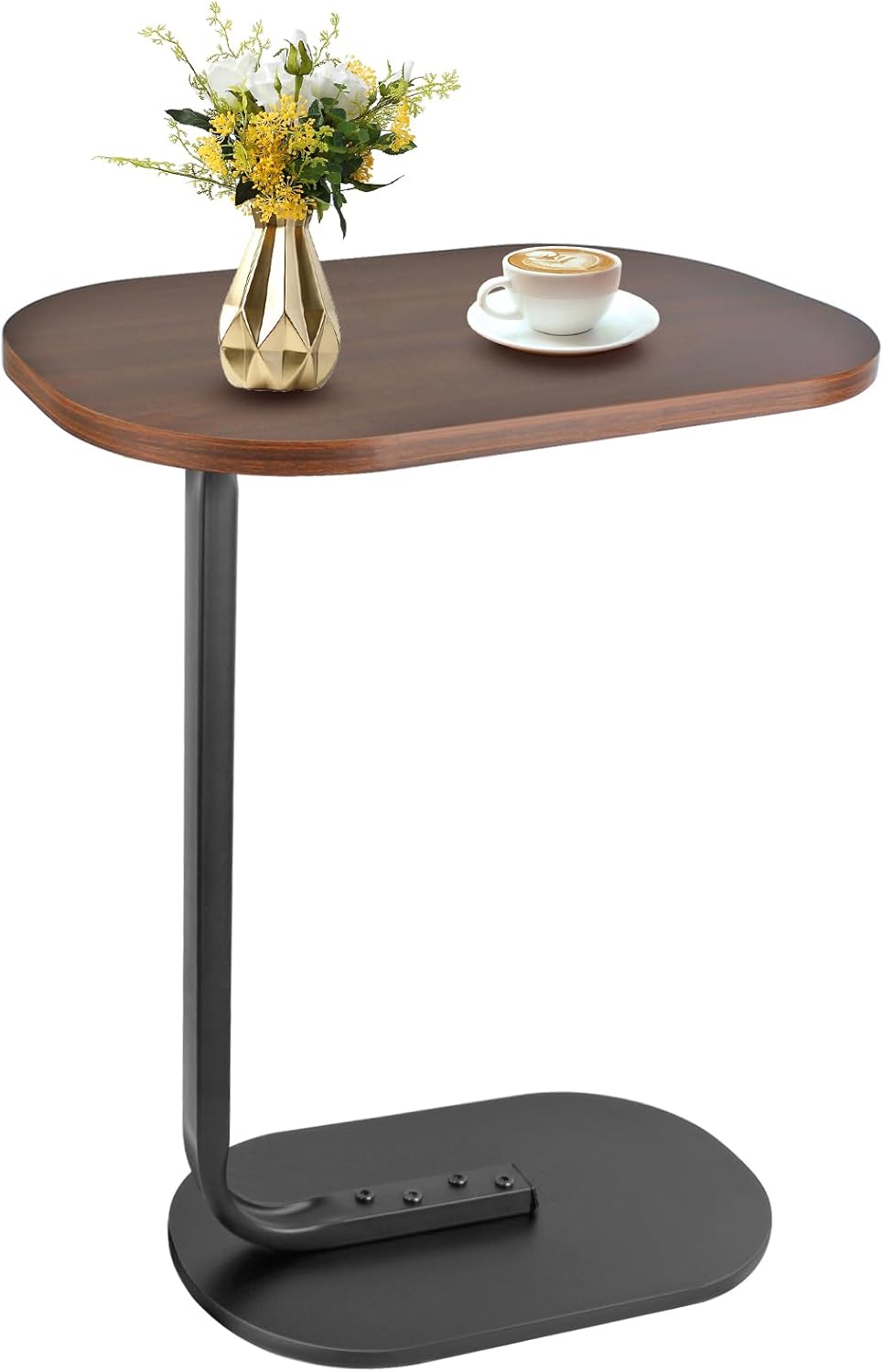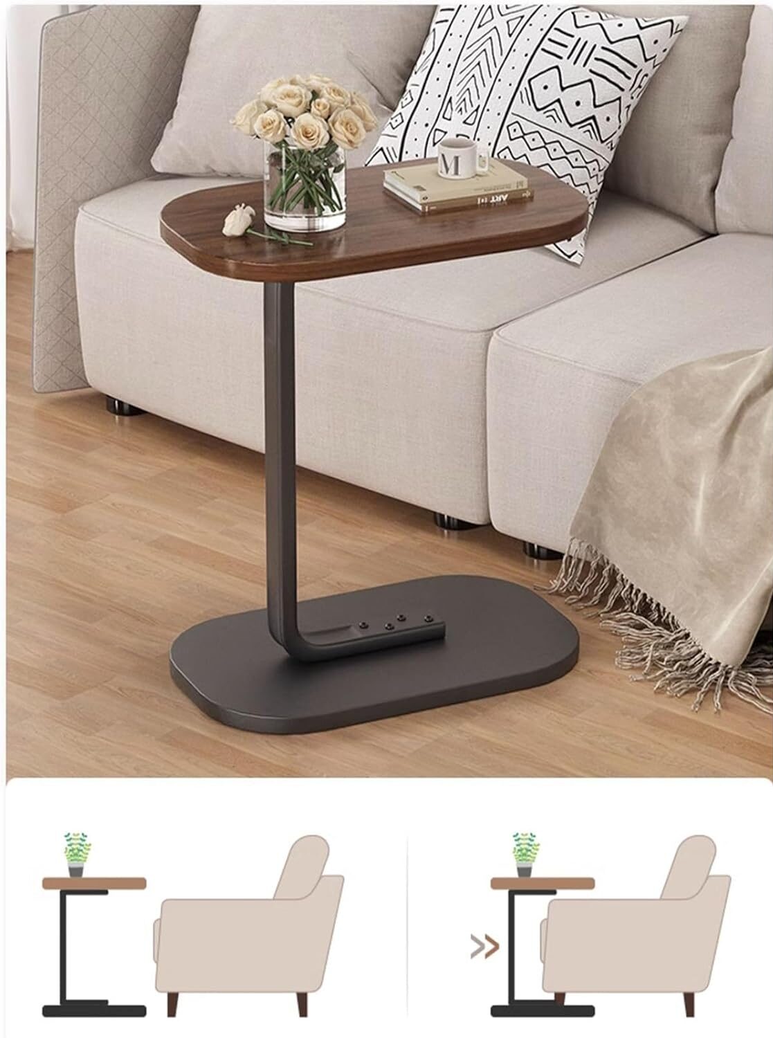 Forma în C a acestei măsuțe permite împingerea facilă sub partea de jos a canapelei, patului sau scaunului, făcând posibilă utilizarea confortabilă fără a te ridica. Blatul oval al mesei previne deteriorările, spre deosebire de marginile ascuțite ale meselor pătrate.