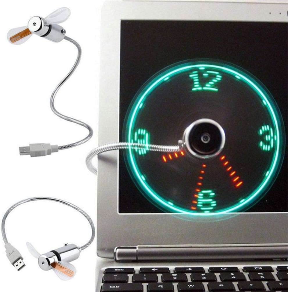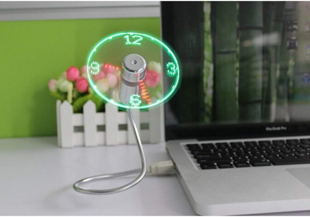 Acest ventilator USB vă va răcori plăcut, în același timp afișând ora în iluminare LED. Gâtul flexibil permite ajustarea ușoară a unghiului, astfel încât să fie întotdeauna în poziția perfectă.