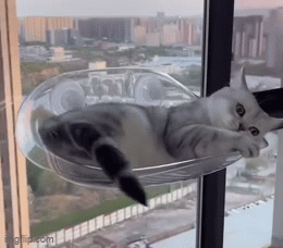 Materialul transparent și designul curbat permit pisicii să observe peisajul din jur din mai multe unghiuri. Razele soarelui pătrund prin zona de odihnă, astfel încât pisica să se bucure de lumină întreaga zi.