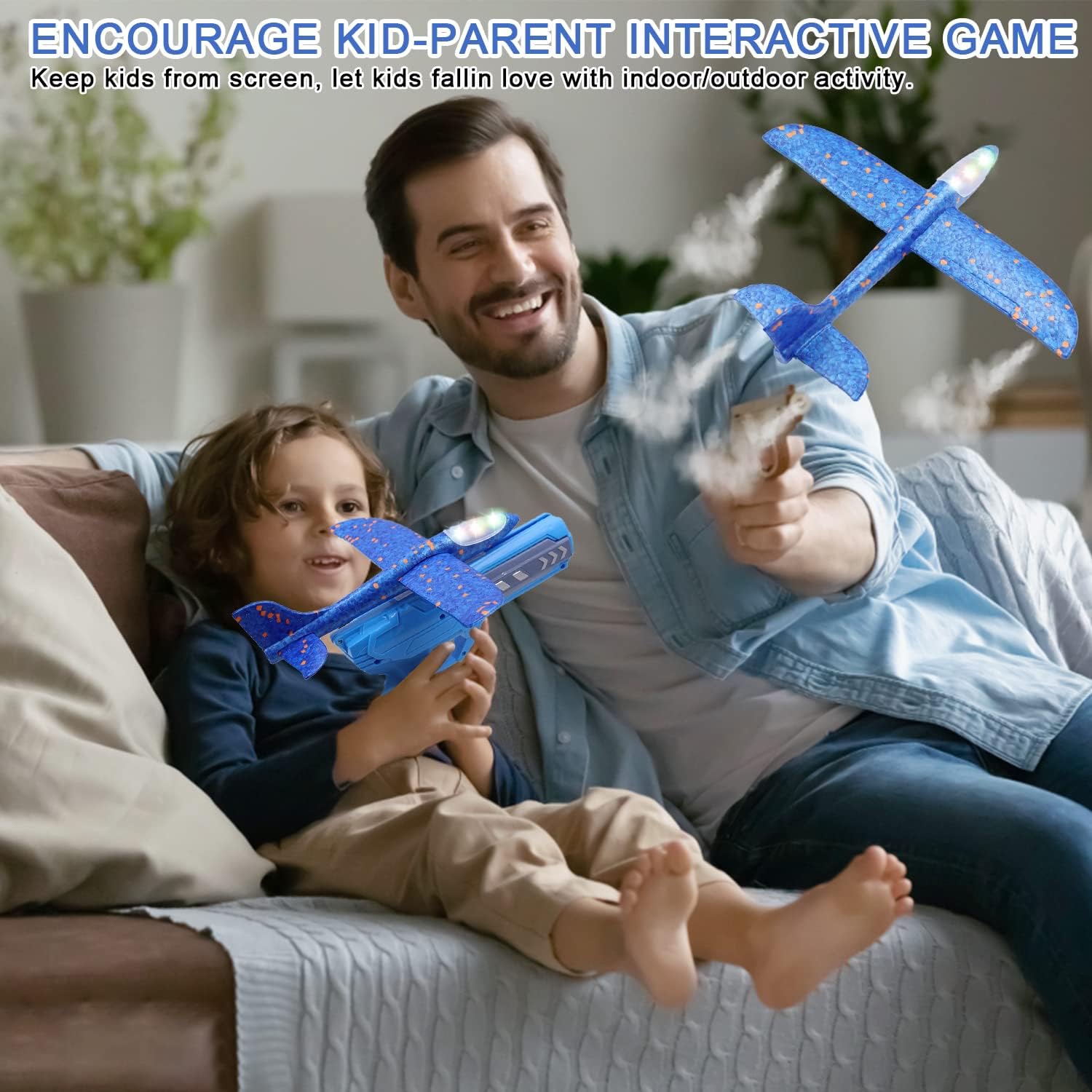 Fiecare set conține un avion din spumă și un lansator, permițând copiilor să se joace cu plăcere ziua sau noaptea. Este un cadou ideal pentru pasionații de avioane, entuziaștii de aviație și pentru distracția în aer liber, încurajându-i pe copii să fie activi și creativi.