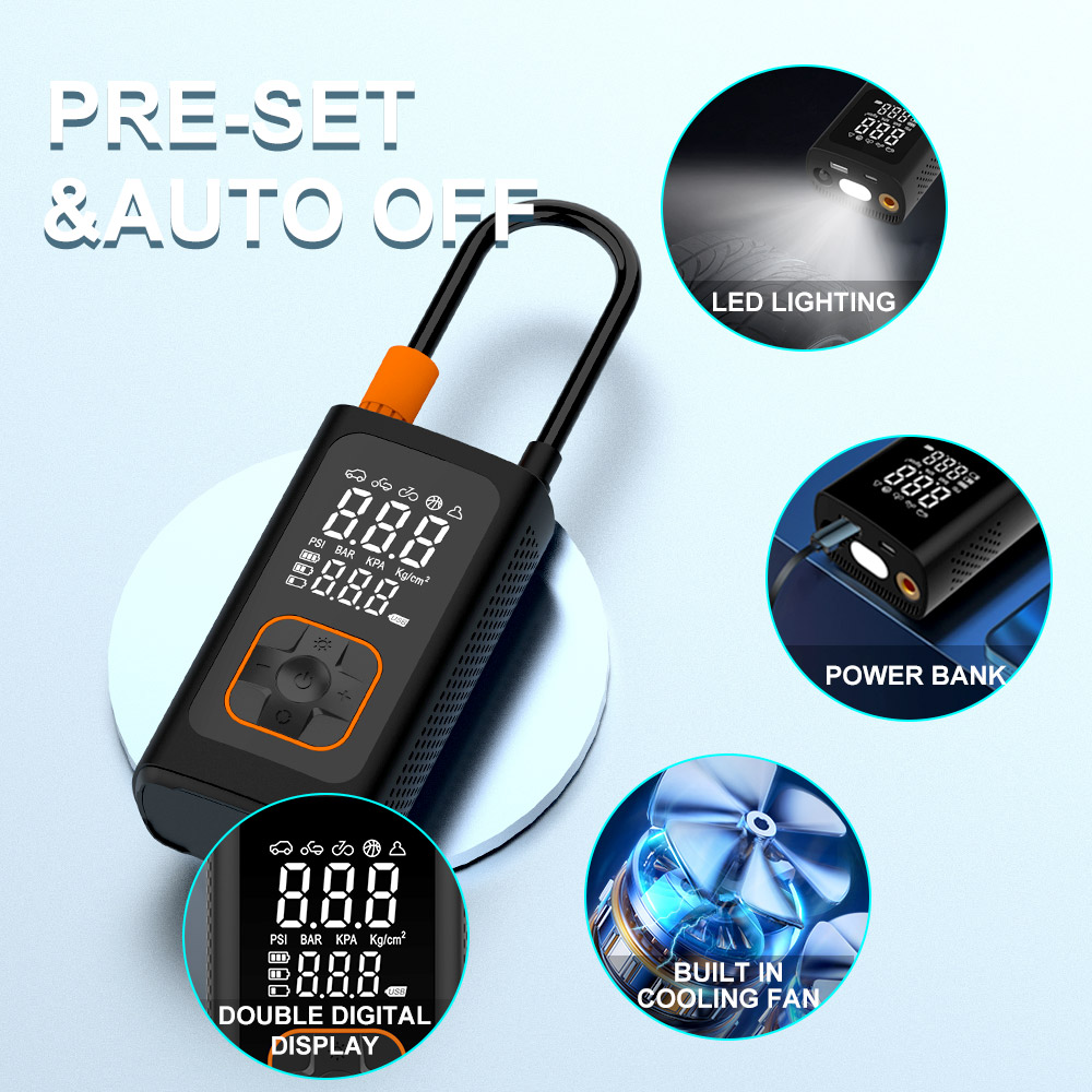 Datorită cipului său performant PUMPIX, vă va umfla anvelopele în timp record. De la 30 la 35 PSI în doar 50 de secunde! Umflă complet o anvelopă de mașină goală în doar 5 minute. Ecranul LED mare afișează atât presiunea actuală, cât și cea presetată pentru control total.