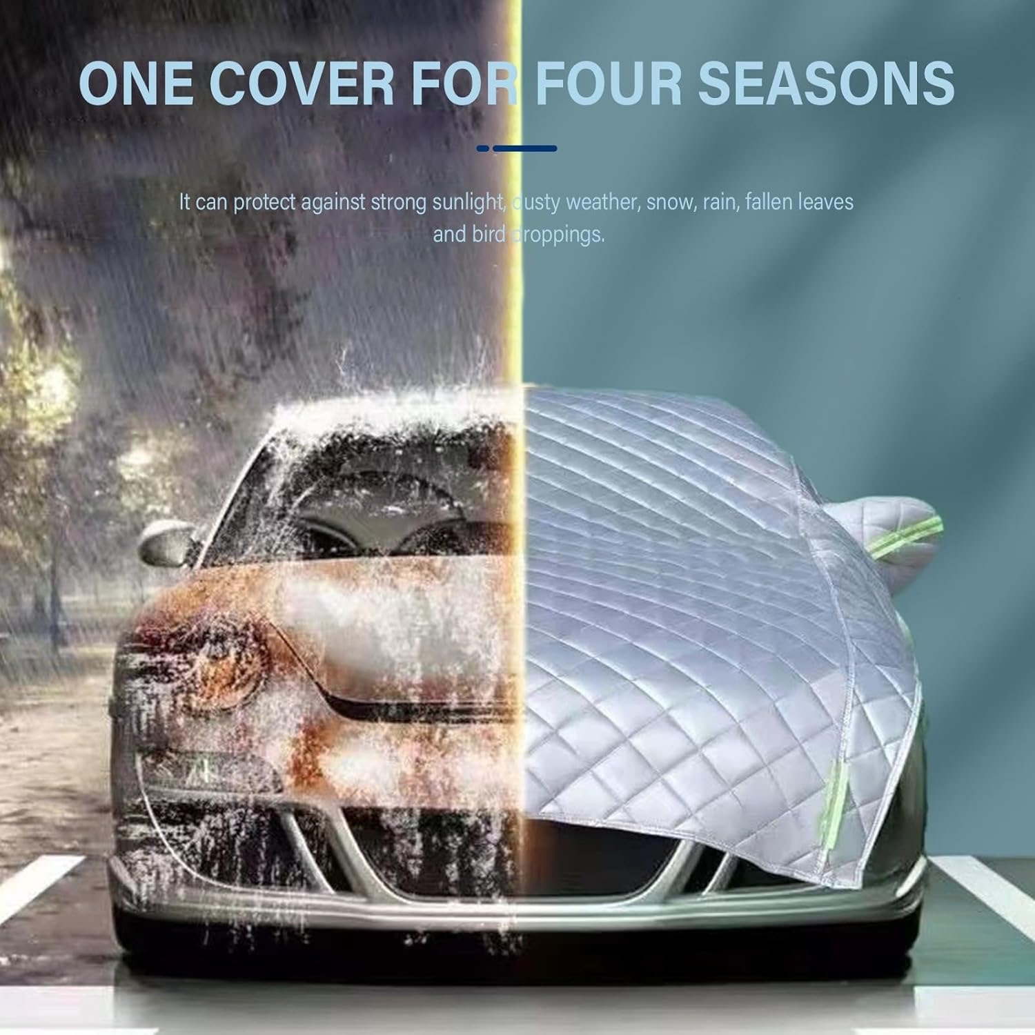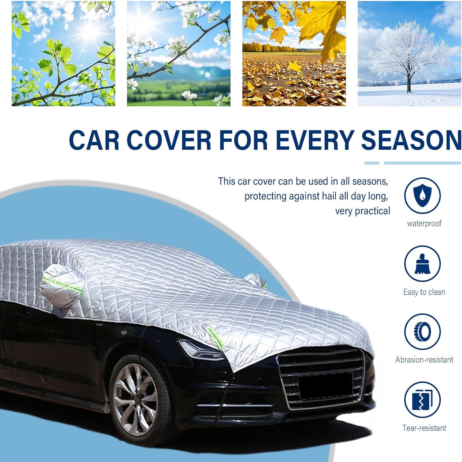 Semi-husa HAILPRO este realizată dintr-o structură cu patru straturi: material oxford exterior rezistent la rupere, strat de bumbac grosificat și căptușeală interioară moale. Această combinație oferă o protecție excelentă împotriva grindinei, zgârieturilor, zăpezii, ploilor torențiale și razelor directe ale soarelui. Strat anti-UV protejează vopseaua mașinii împotriva decolorării și îmbătrânirii, în timp ce cusăturile impermeabile nu lasă umezeala să pătrundă, nici măcar în timpul furtunii.