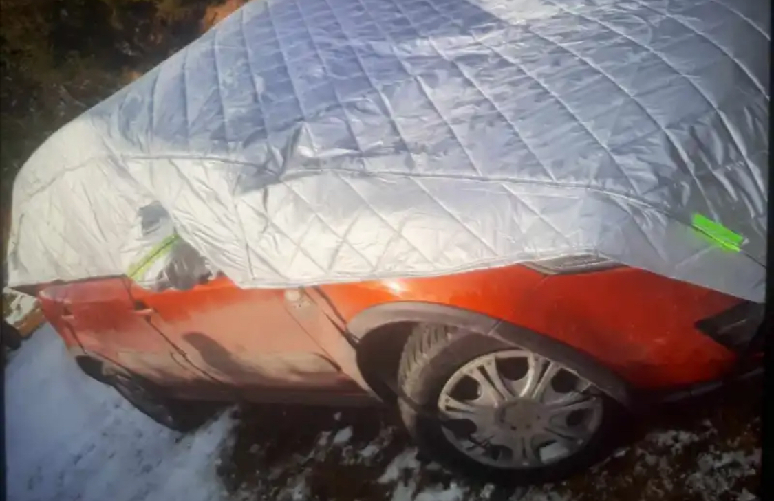 Sistemul puternic de prindere cu coardă fixează husa ferm pe mașină, astfel încât să nu se desprindă nici măcar pe vânt puternic. Benzile reflectorizante sporesc vizibilitatea pe timp de noapte pentru o siguranță suplimentară la parcare. Datorită designului parțial, husa se montează și se dă jos rapid și ușor, chiar și în gerul iernii — economisindu-vă timp și efort.