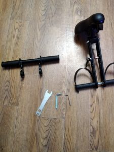 Pachetul include: 1 x scaun 1 x suport pentru picioare 2 x pedale 3 x cheie imbus 1 x cheie sau 1x suport pentru mâini