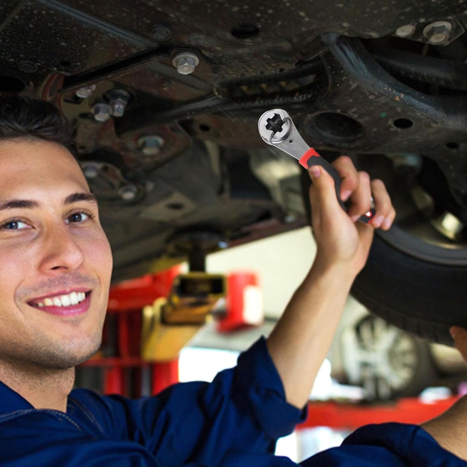 Cheia RATCHET are un cap reglabil care se potrivește atât dimensiunilor metrice (6–22 mm), cât și celor imperiale (1/4"–7/8"). Printr-o simplă apăsare de buton se adaptează la diferite piulițe și șuruburi — perfectă pentru reparații auto, întreținerea locuinței și lucrări mecanice.