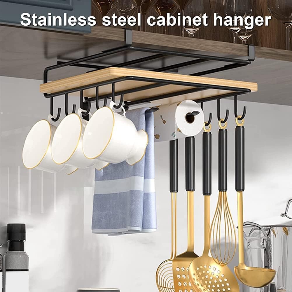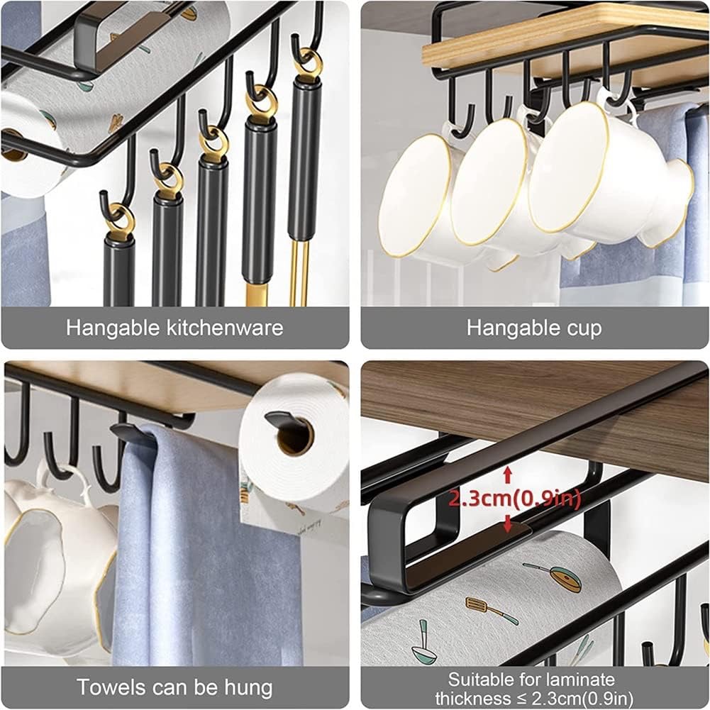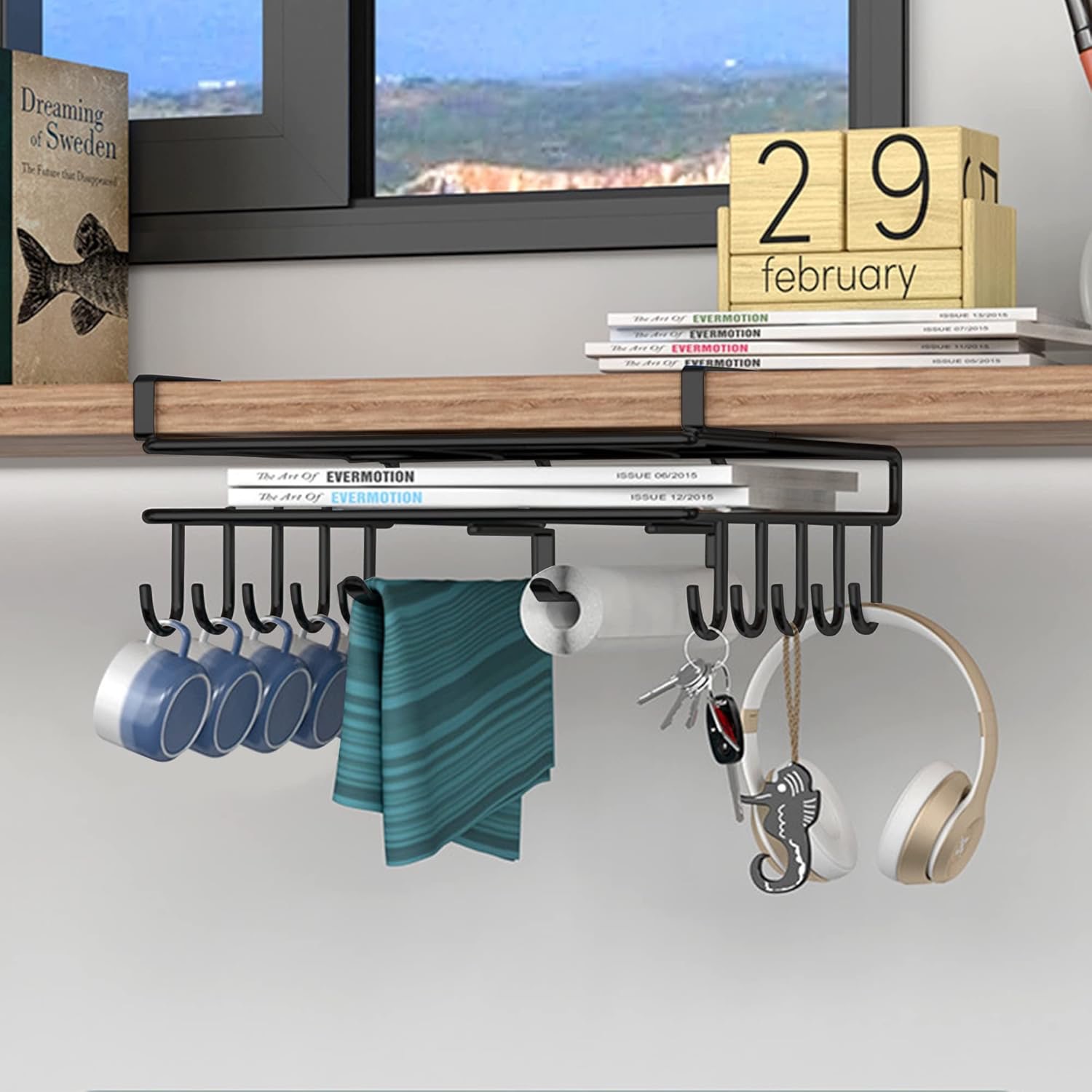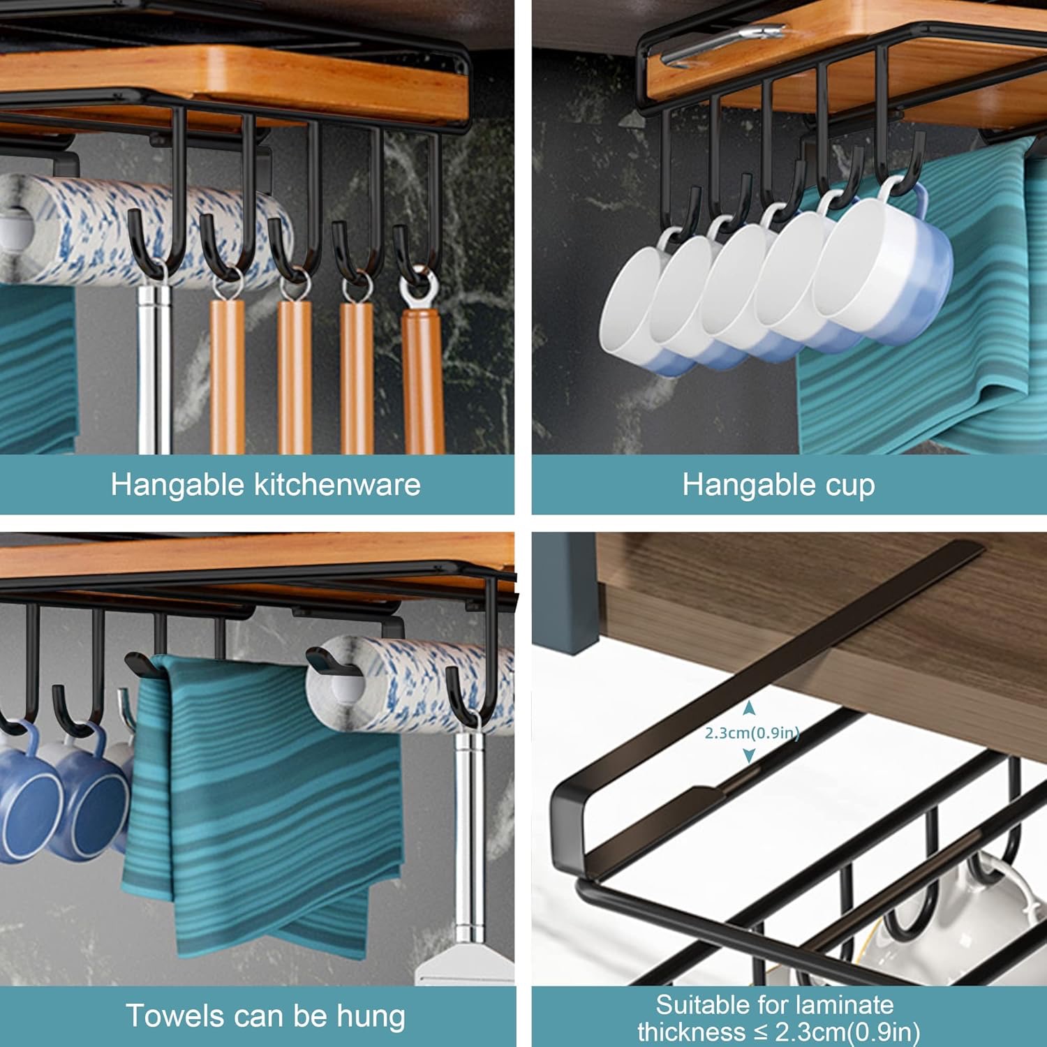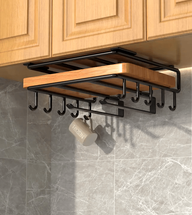 Proiectat să atârne în siguranță sub dulapuri, acest suport vă ajută să utilizați spațiul vertical nefolosit. Datorită cârligelor multiple, menține vasele, ustensilele de bucătărie, capacele, ceștile și prosoapele ordonate și mereu la îndemână, reducând dezordinea în bucătăriile mici sau foarte folosite.