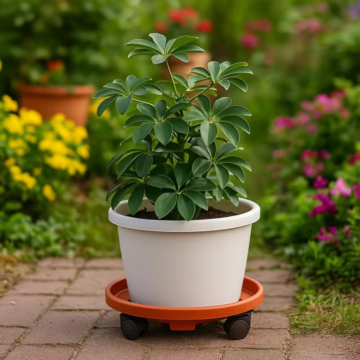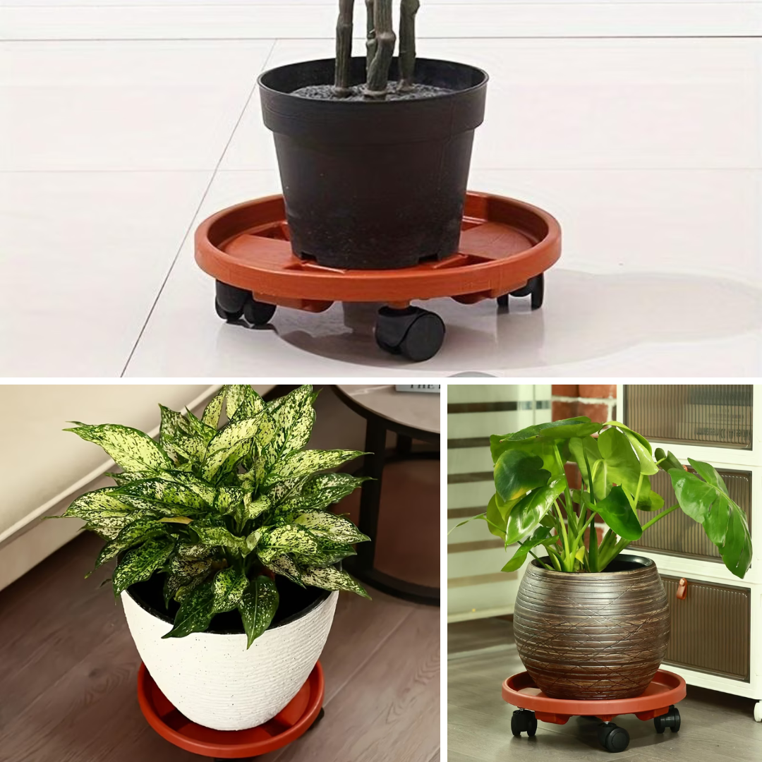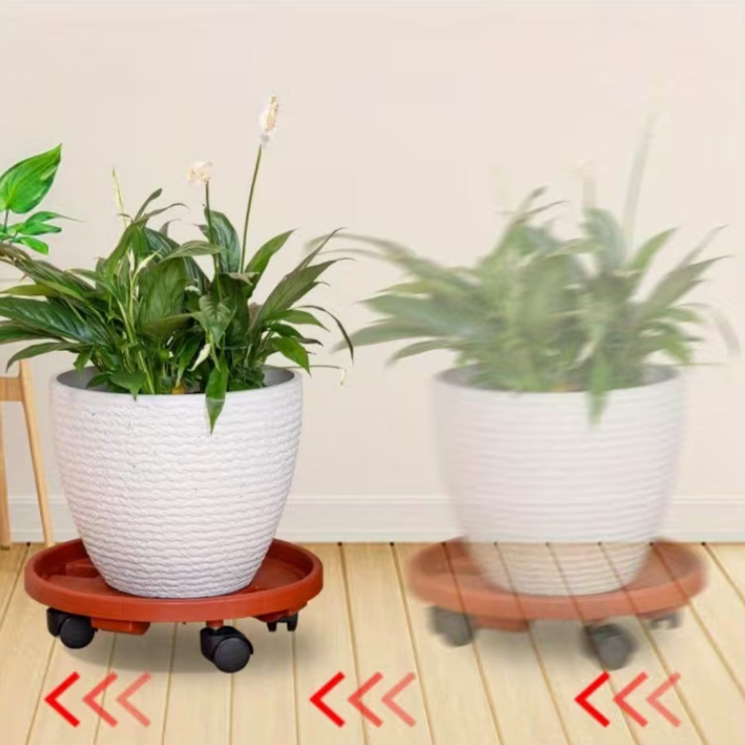 Echipat cu roți pivotante netede, la 360 de grade, suportul vă permite să mutați fără efort plantele, vaze și recipiente. Poziția ridicată a ghivecelor protejează suplimentar podelele împotriva zgârieturilor, umezelii și uzurii.