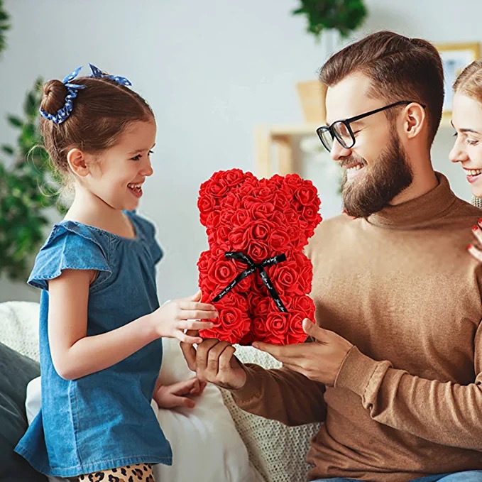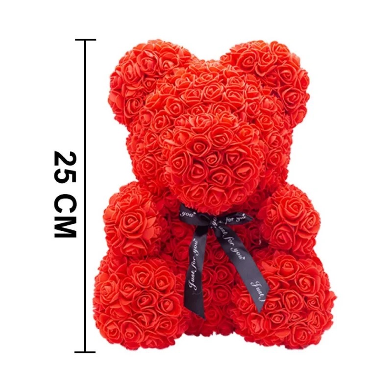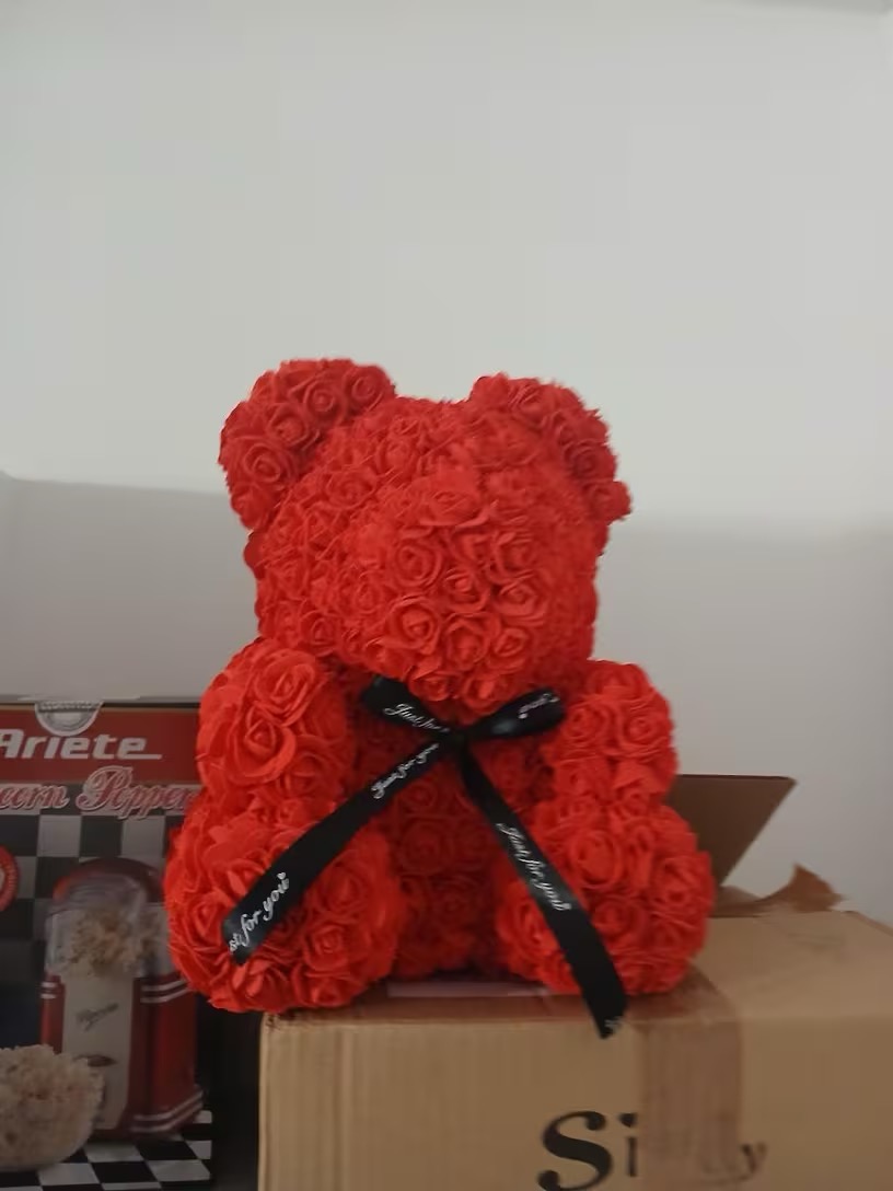 Realizat cu grijă și atenție la detalii, trandafirii își păstrează forma și culoarea ani la rând. Nu se ofilesc, nu cad și nu se deteriorează, transformând acest ursuleț într-un simbol durabil al iubirii.
