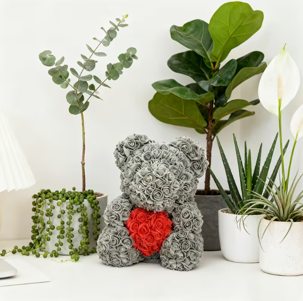 Ursulețul este realizat manual din trandafiri artificiali care își păstrează forma și culoarea, oferind un efect decorativ de lungă durată. Este alegerea ideală pentru oricine își dorește un cadou cu valoare durabilă și o simbolistică puternică a emoțiilor 🌹.